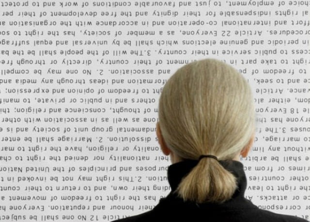 Recitas solo, coletiva e multilinguais a partir da memória da Declaração dos direitos humanos. Acts of memory é Uma série de performances em 60 atos, proposta por Monica Ross (foto) com a participação de voluntários.