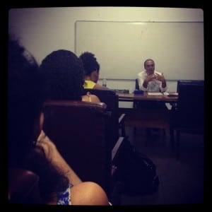Este ano o Panorama celebra 5 anos de parceria com os cursos de graduação em dança do Rio com o ciclo Panorama@Universidades, levando teóricos e artistas convidados para aulas especiais em torno dos temas curatoriais do festival. Ontem, o critico de dança e curador português Antônio Pinto Ribeiro foi falar com alunos do curso de dança da UFRJ, na turma da professora e também crítica de dança Silvia Soter. A palestra foi sobre a ideia de comunidade e os possíveis caminhos escolhidos por artistas que tratam desta questão através do movimento.