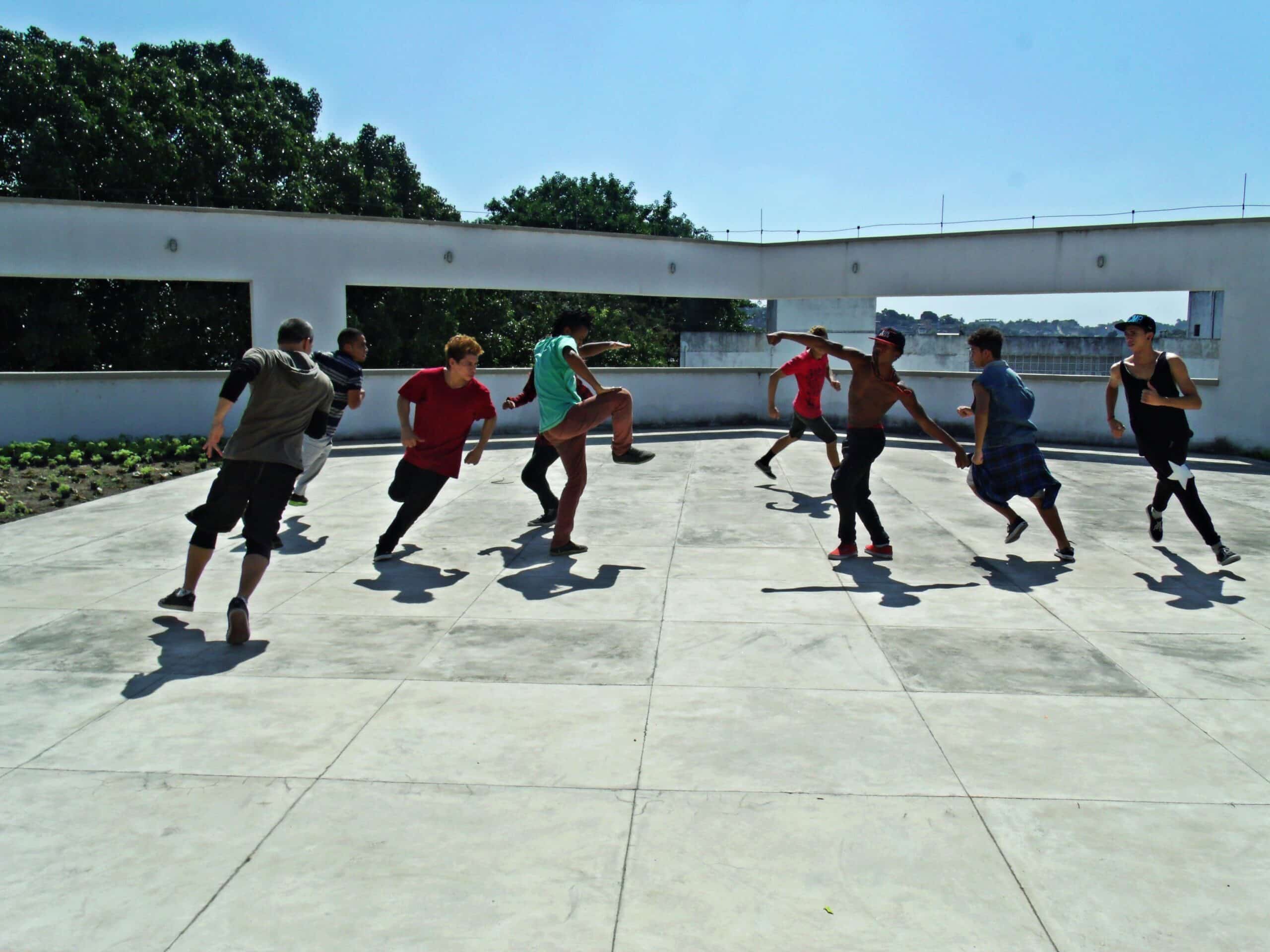“A ideia veio quando falávamos de como eles se sentiam na vida e nas conquistas diárias. E o nome surgiu daí. Se sentiam como turma, coletivo, pares… A peça coreográfica é resultado de um trabalho coletivo. Totalmente urbanos e modernos, influenciados pelas danças sociais e pela ousadia da dança contemporânea, dialogando com os passos de Break, Passinho e Hip Hop. Eles se apropriaram do trabalho e da autoria do movimento.